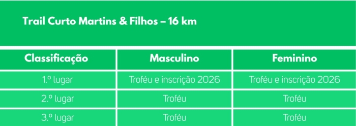 * - Apenas no Trail Curto Martins & Filhos – 16 Km