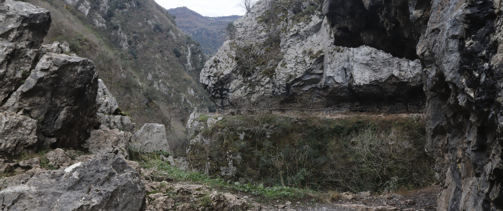Este é um dos percursos mais emblemáticos das Astúrias, e não é difícil perceber porquê. O desfiladeiro escavado pela ribeira de Las Xanas oferece um cenário impressionante, onde a rocha moldada pela água cria um verdadeiro espetáculo natural, muito apreciado por quem caminha e por quem gosta de fotografia. Com um olhar atento, é ainda possível identificar estalactites de antigas grutas calcárias que o curso de água deixou expostas ao longo do tempo.